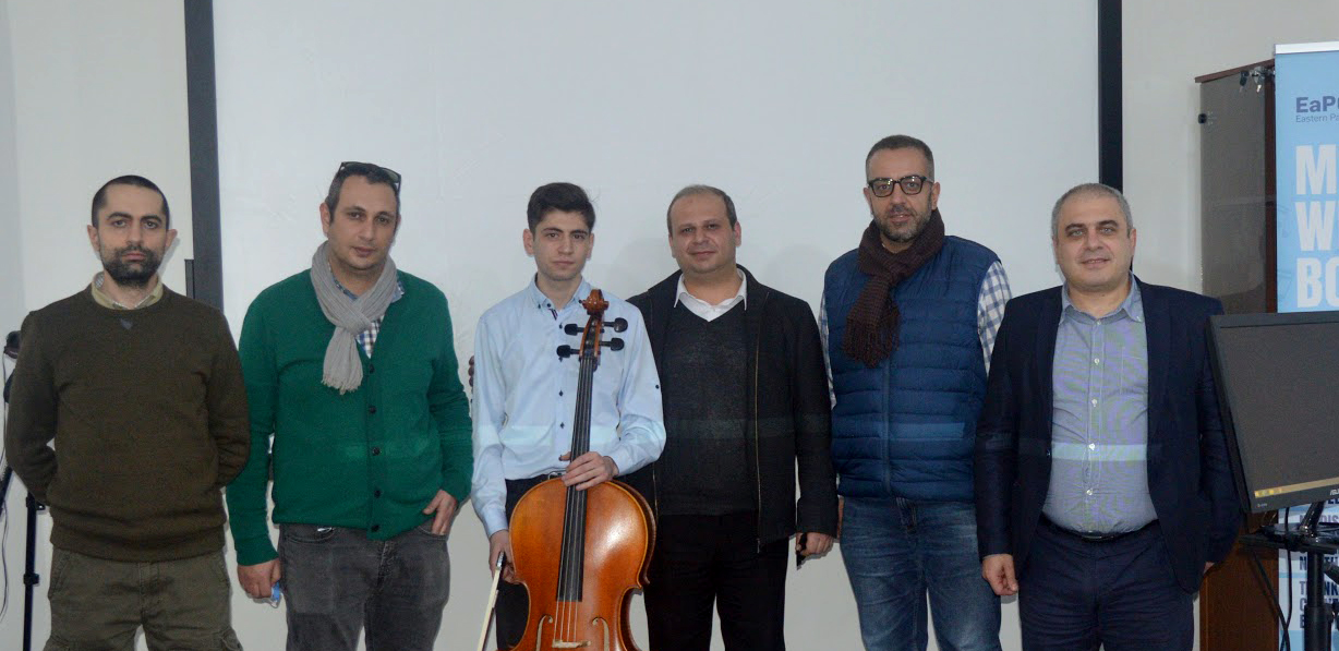 During the event, cellists Marine Rodallec of PIANOANDCO cultural association and Andranik Agajanyan of Komitas State Conservatory of Yerevan performed together in real time, despite being thousands of kilometres apart. With Marine in Marseilles, France, at LMA-CNRS (Laboratory of Mechanics and Acoustics of the French National Centre for Scientific Research) and Andranik in Yerevan, Armenia, at ASNET-AM’s premises, the artists performed a Jacque Offenbach piece together as if they were in the same room.
